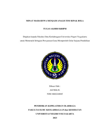Burhanudin, Alif Rifki (2023) Minat Mahasiswa Menjadi Analis Tim Sepak Bola. S1 thesis, Fakultas Ilmu Keolahragaan dan Kesehatan.