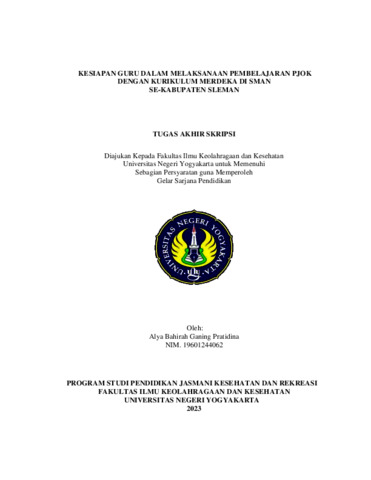Pratidina, Alya Bahirah Ganing (2023) Kesiapan Guru Dalam Melaksanakan Pembelajaran PJOK dengan Kurikulum Merdeka di SMAN Se-Kabupaten Sleman. S1 thesis, Fakultas Ilmu Keolahragaan dan Kesehatan.