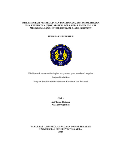 | Uncontrolled Keywords: | implementasi, pembelajaran PJOK, metode Problem Based Learning |