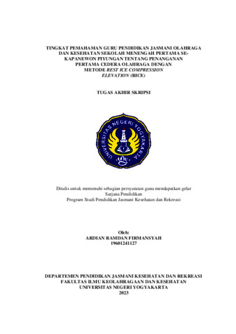 Firmansyah, Ardian Ramdan (2023) Tingkat Pemahaman Guru Pendidikan Jasmani Olahraga dan Kesehatan Sekolah Menengah Pertama se-Kapanewon Piyungan tentang Penanganan Pertama Cedera Olahraga dengan Metode Rest Ice Compression Elevation (RICE). S1 thesis, Fakultas Ilmu Keolahragaan dan Kesehatan.
